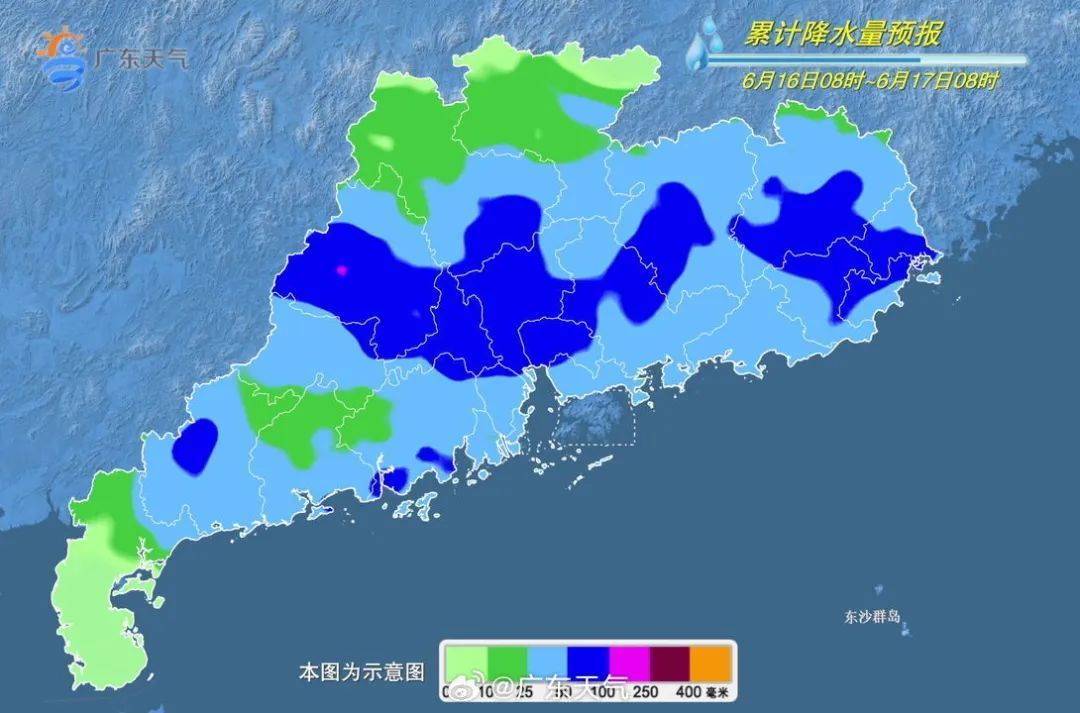 16日,粤北和珠江三角洲市县有大雨到暴雨,局部大暴雨,其余市县多云,有中(雷)雨,局部暴雨。